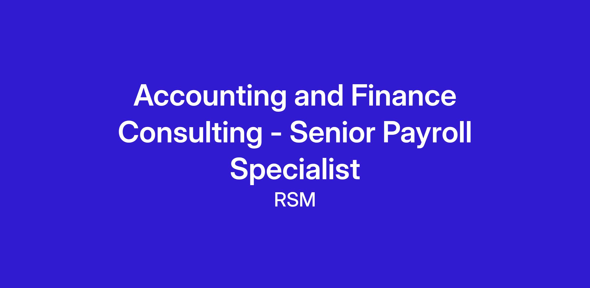 RSM’s Payroll Services practice is looking for a dynamic Senior Payroll Specialist with a team-oriented mindset and a love for collaborating and helping clients solve problems. This is a unique opportunity to work remotely while being a valued member of our high-performing team. You will be an expert resource, with senior level knowledge in payroll processing, client support, payroll workflows and platforms.