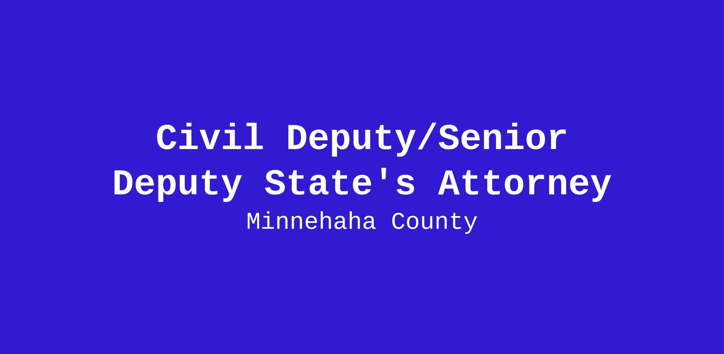 The Minnehaha County State's Attorney's Office is accepting applications for a Civil Deputy/Senior Deputy State's Attorney. This position plays a pivotal role in supporting the Highway Department and other county operations. This is an opportunity to collaborate with elected officials, department heads, and public boards, ensuring county projects, contracts, and policies are legally sound and strategically executed.
