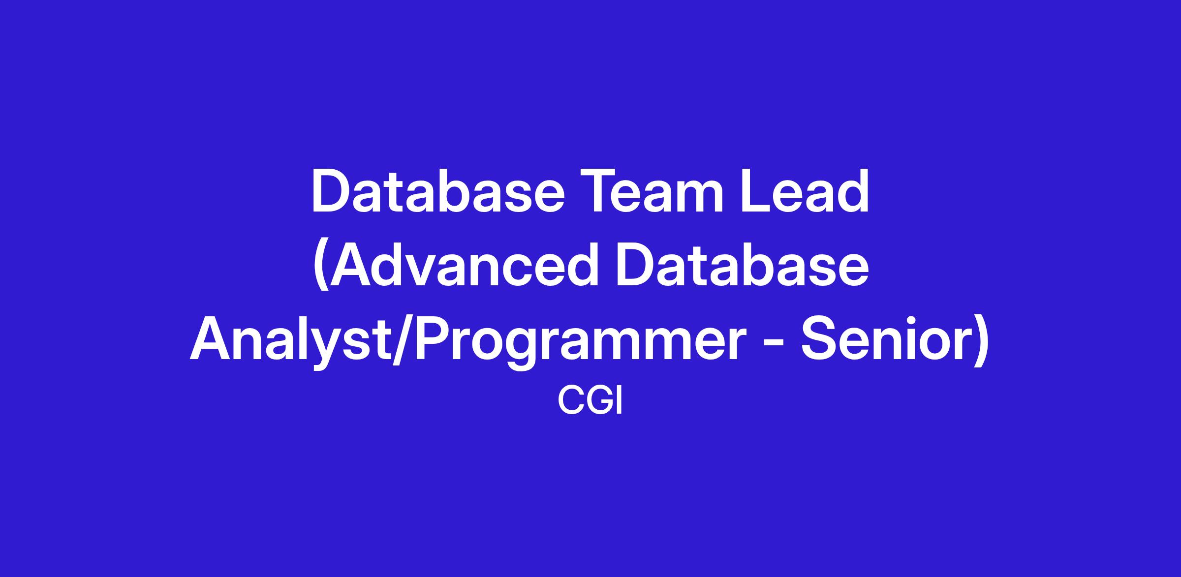 Database Team Lead (Advanced Database Analyst/Programmer - Senior)