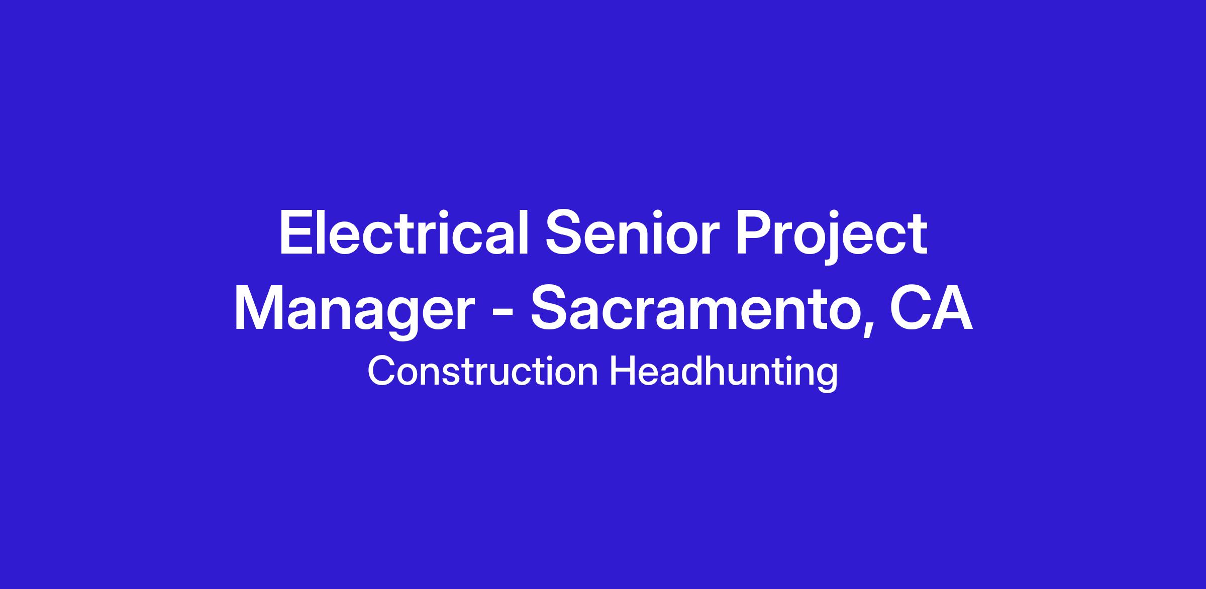 Construction Headhunting is on the Hunt for an Electrical Senior Project Manager, come join our client, a Leading firm with footprint in Central & Northern California.  Client promotes a Great Work-Life Balance, in this role you will manage roughly 2-4 Large projects.