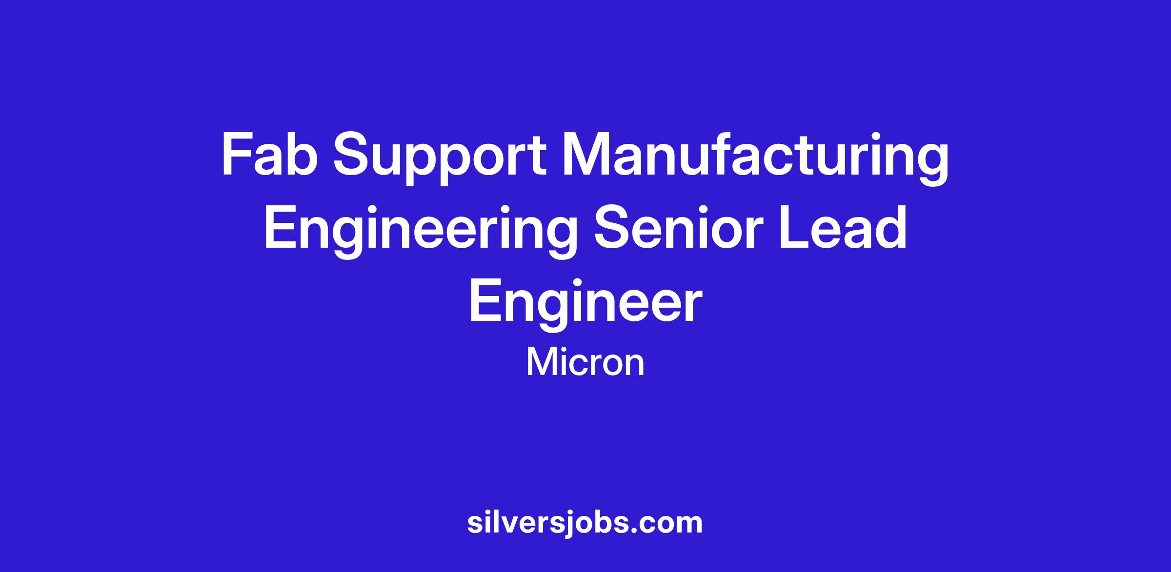 The Fab Support Manufacturing Engineering Senior Lead Engineer role at Micron is a high-impact leadership opportunity in Boise, Idaho. This position is designed for an expert leader with a consistent track record of guiding engineering leaders across different fields and driving pivotal initiatives in a sophisticated manufacturing environment.