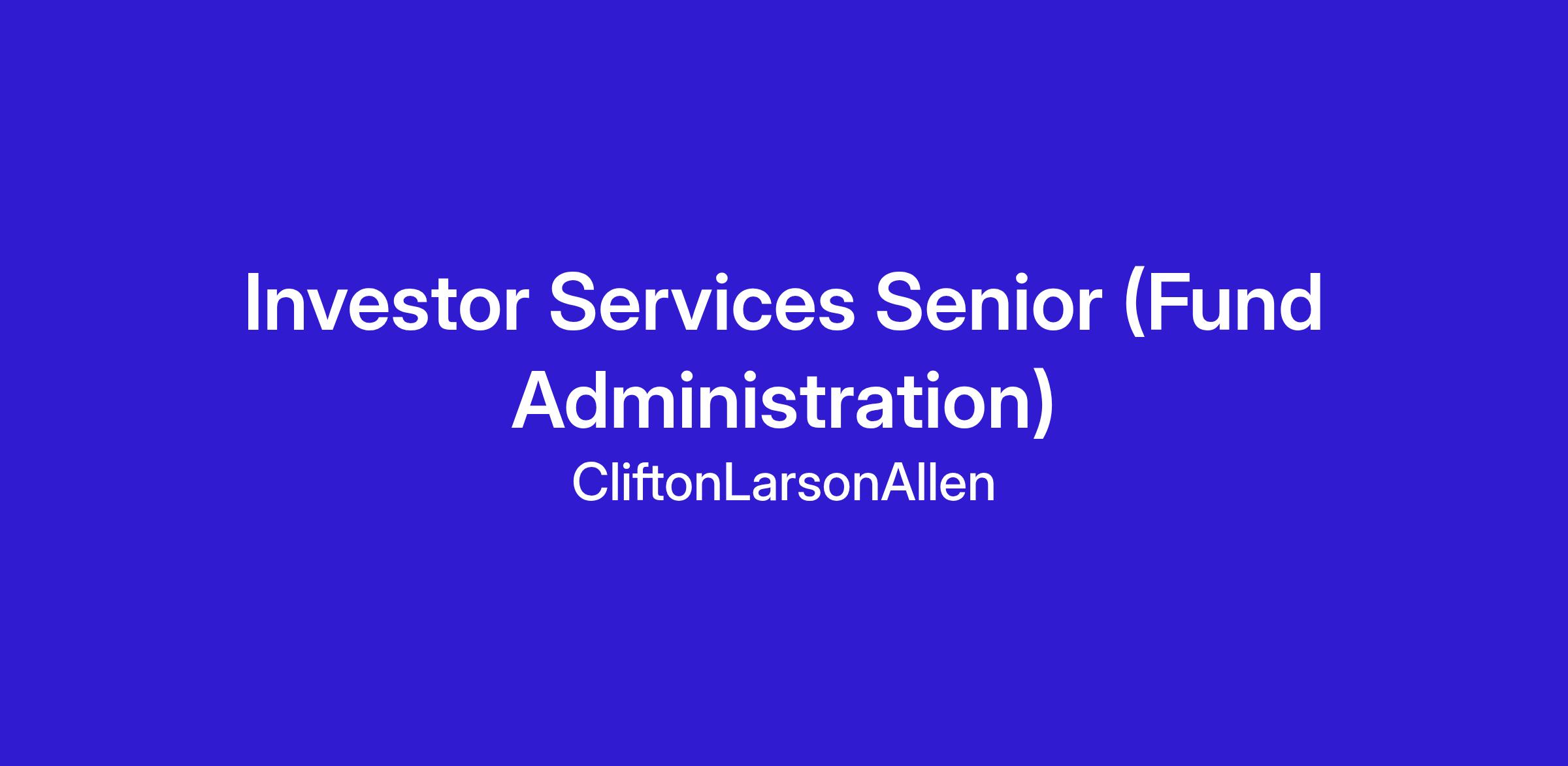 CLA is currently seeking an Investor Services Senior with experience, to join our Fund Administration group in our West, Sunbelt, Midwest, or Northeast office.