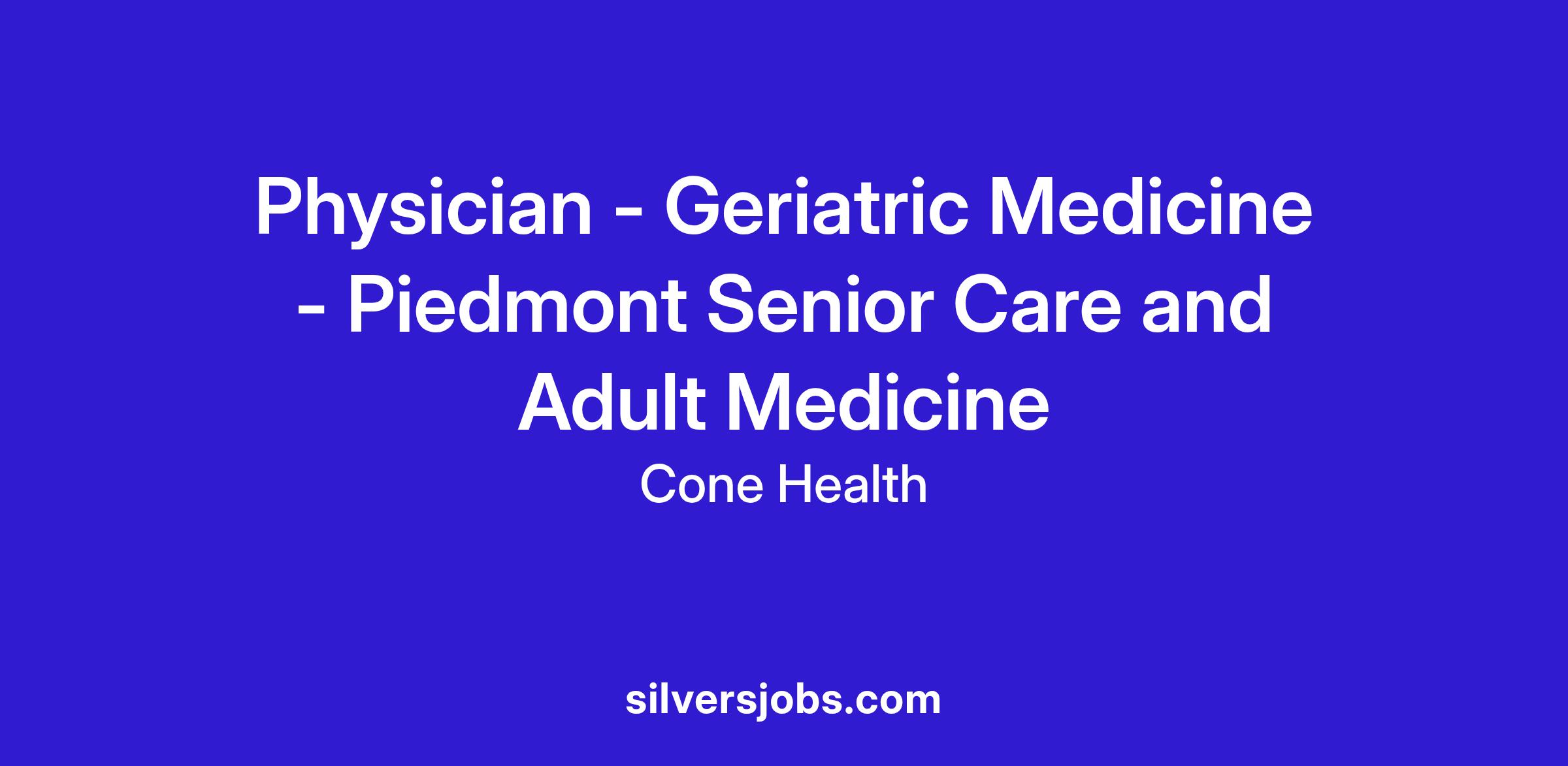 Piedmont Senior Care (PSC), a part of Cone Health, is seeking engaged Physicians with a passion for providing quality care to the geriatric population. Our Team at PSC focuses on adult and geriatric patient care in the outpatient setting, and rounds at assisted living and long-term care facilities, some of which offer onsite clinic services. PSC currently provides Medical Directorship for (7) Skilled Nursing, Assisted Living, and Independent Living services at CCRC Facilities.