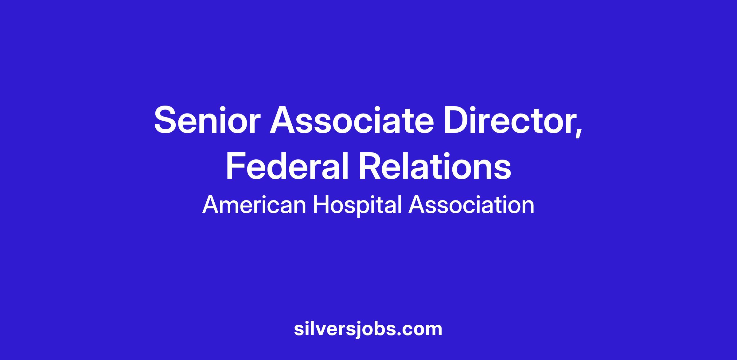 The American Hospital Association (AHA) is a national organization that represents and serves all types of hospitals, health care networks, and their patients and communities. The AHA has two main offices, located in Washington, D.C. and Chicago. We are currently seeking a Senior Associate Director, Federal Relations for our Washington, D.C. office. This position is a hybrid role (three days in the office, two days working remote).