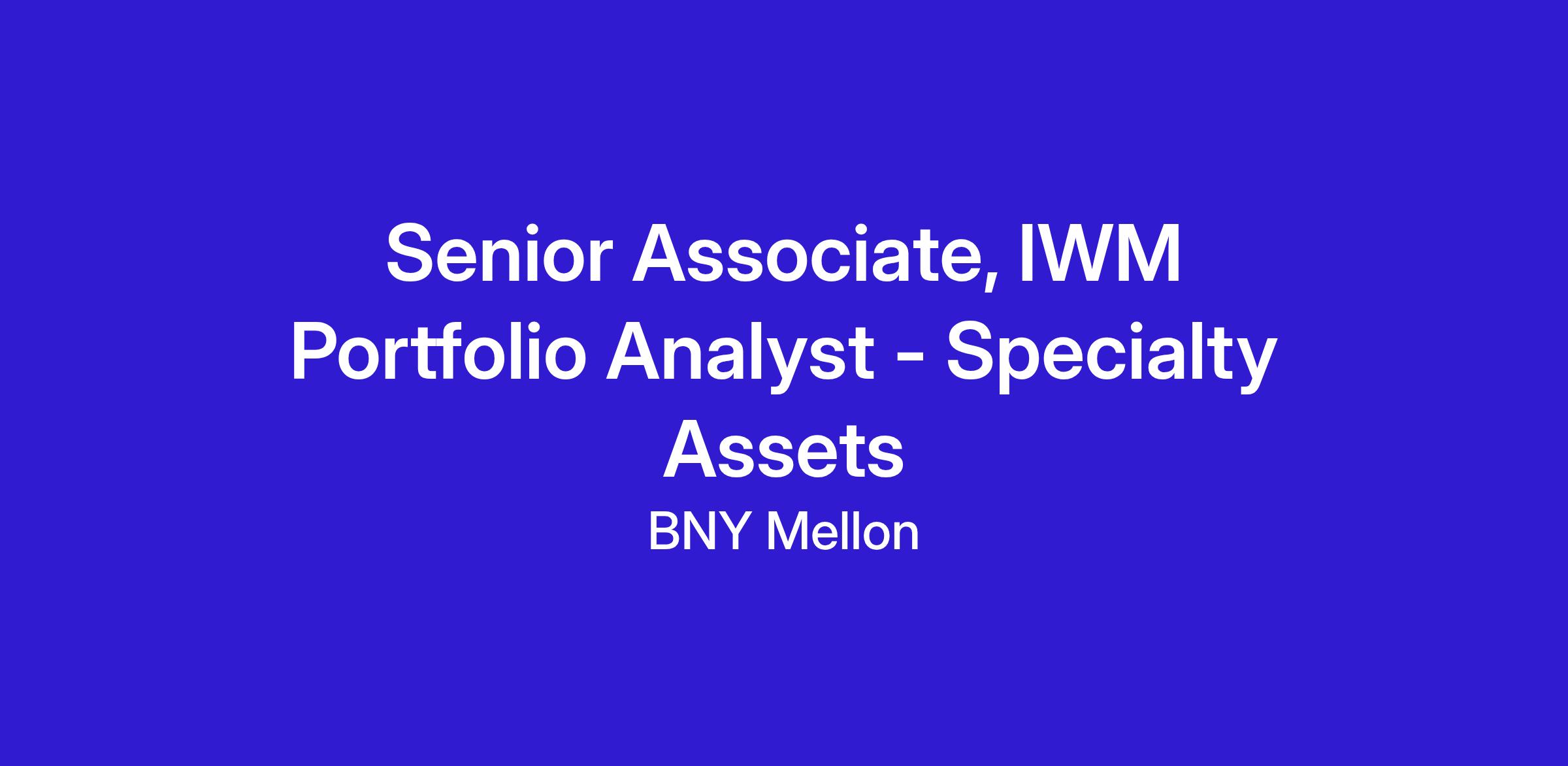 We’re seeking a future team member for the role of Senior Associate, IWM Portfolio Analyst - Special Assets to join our team. This role is located in Philadelphia, PA.