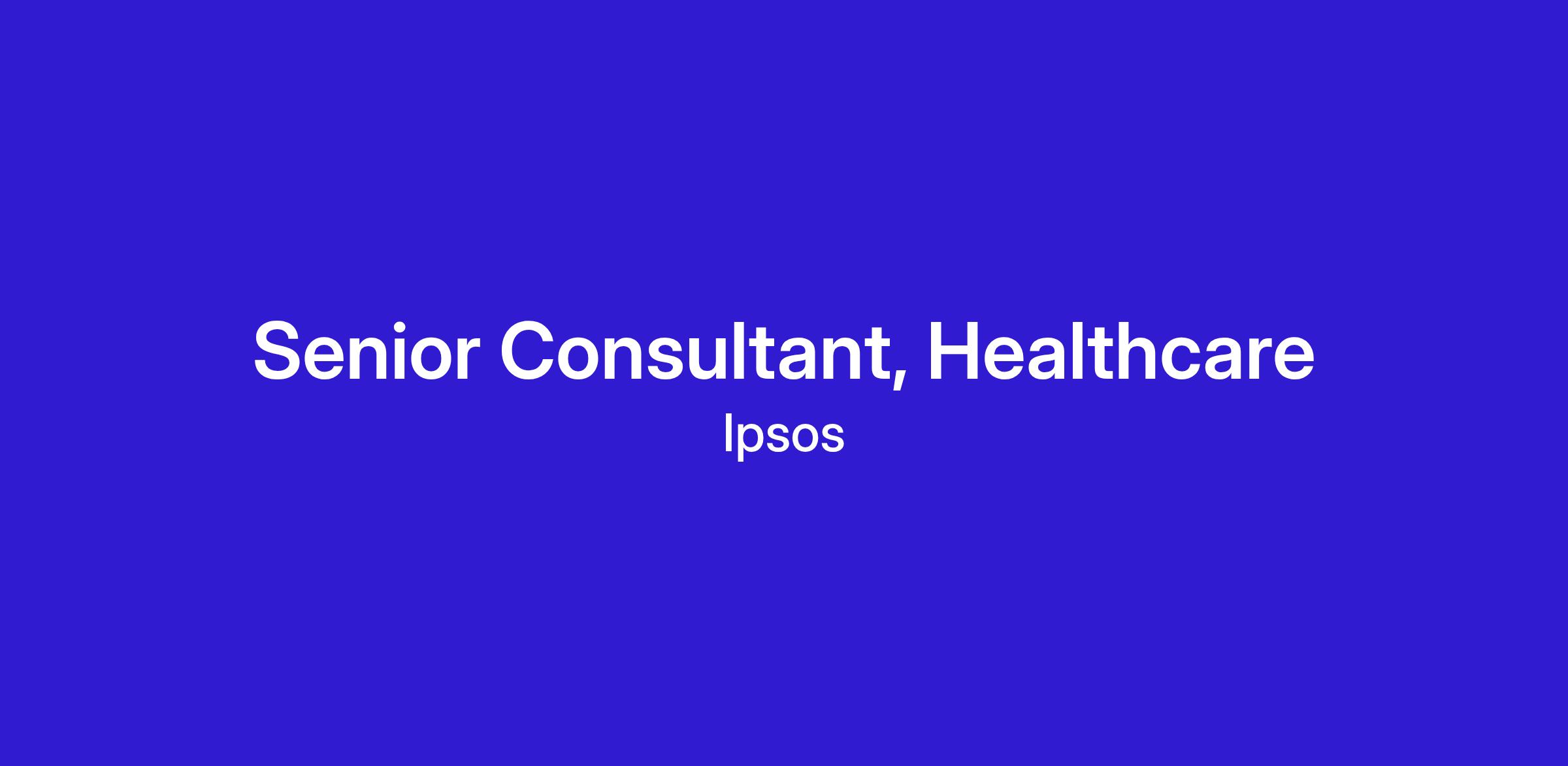 Ipsos Healthcare, a leading market research agency, is looking for a driven, self-motivated Senior Consultant to join our Advisory Services team as we bring meaningful, data-driven engagements to our clients across the healthcare landscape.
