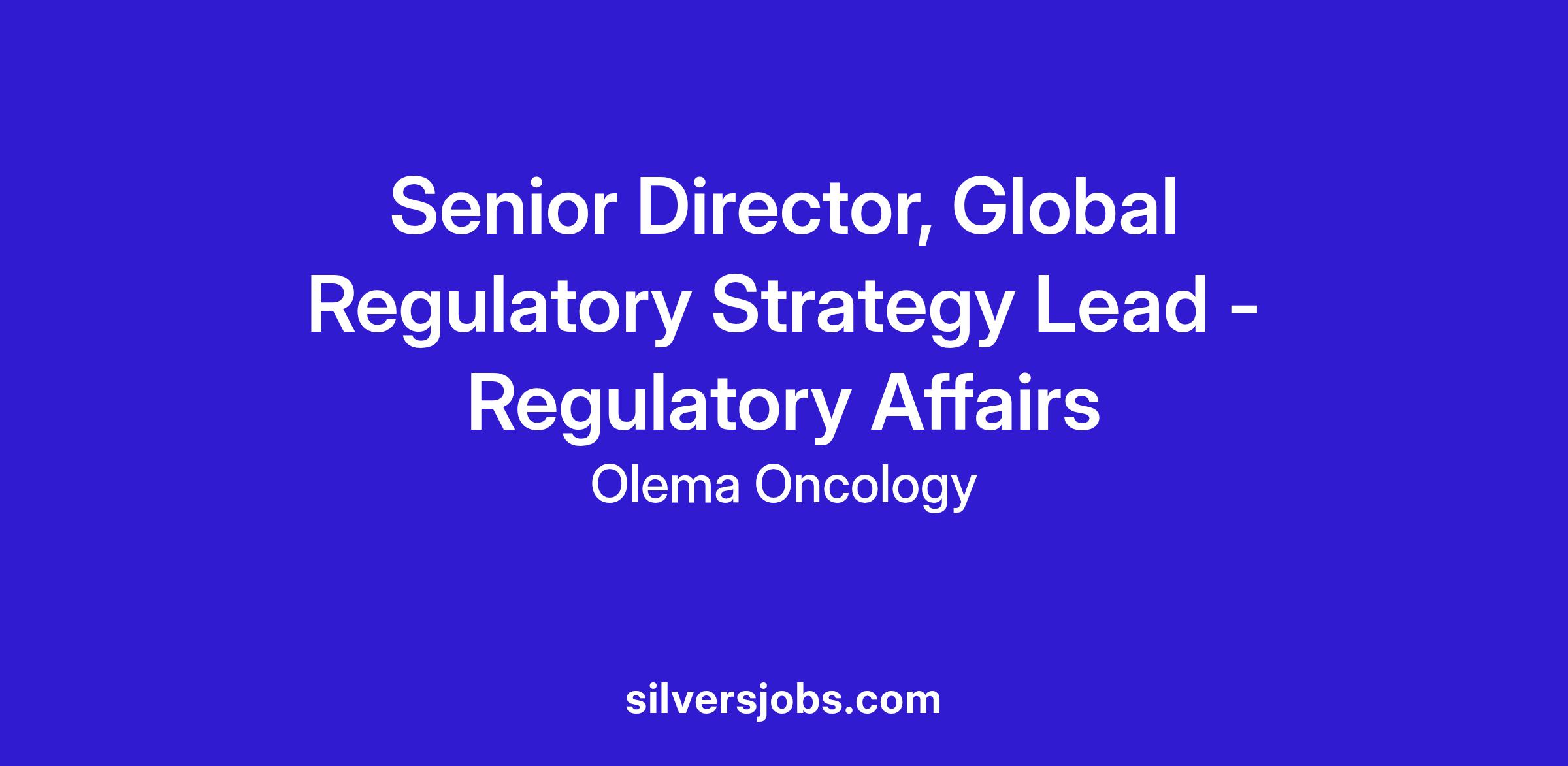 - Develop innovative global regulatory strategies for the Olema portfolio of products, in clinical development and life-cycle management, as needed
