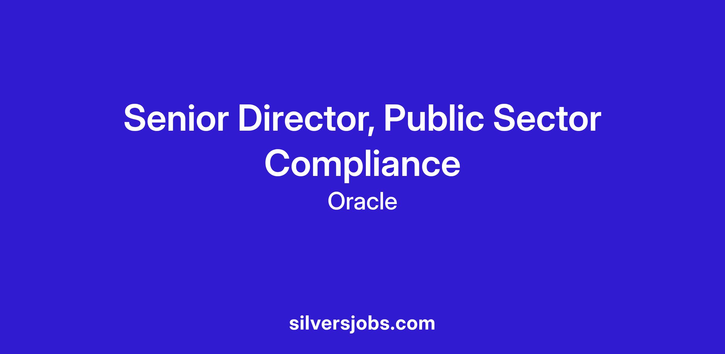 As the Senior Director of Public Sector Compliance Operations: