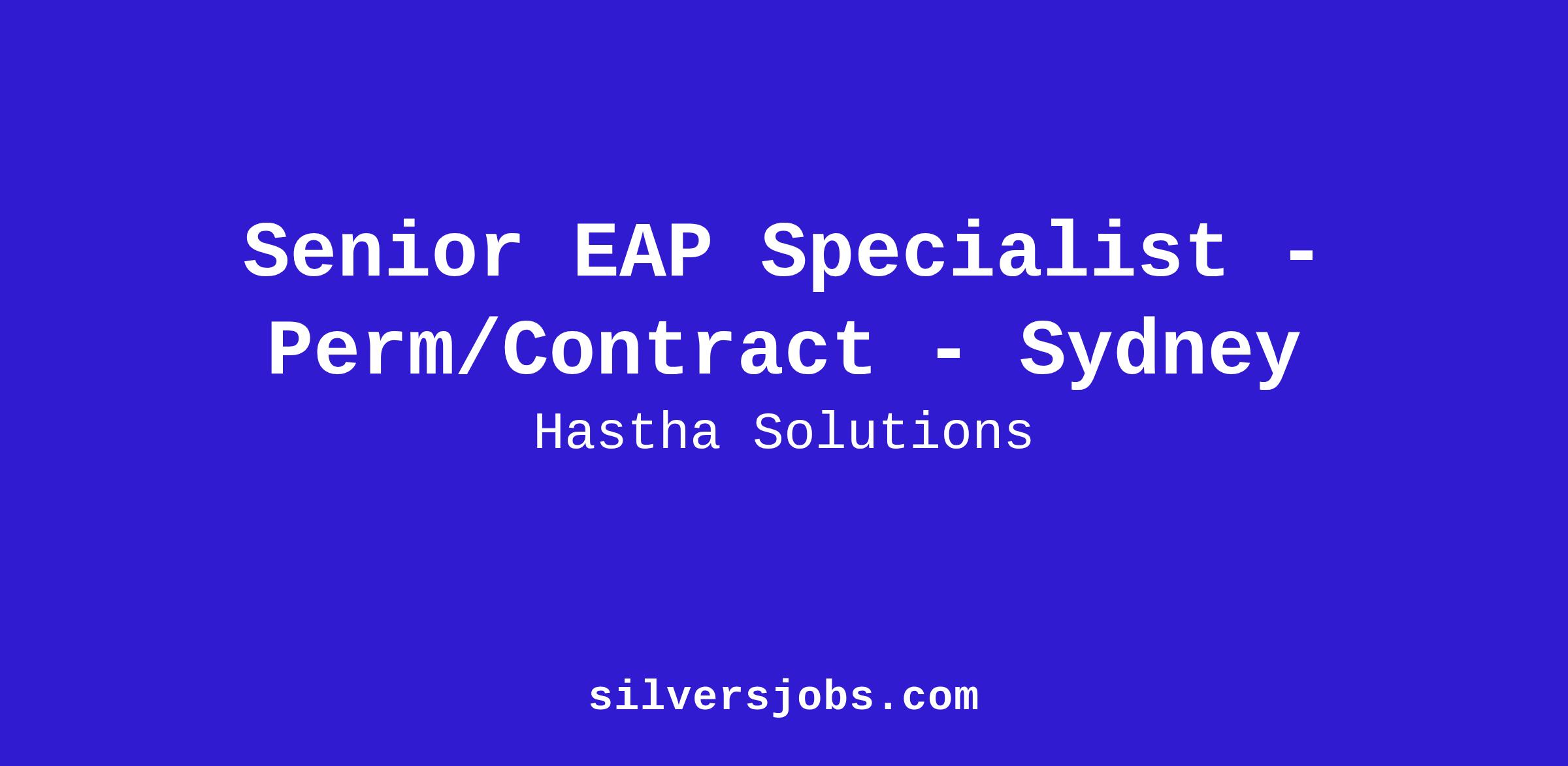 <\/html>"}}],"isMobile":false,"iframe":"true","jobType":"Perm\/Contract","applyName":"Apply Now","zsoid":"701083001","FontFamily":"Verdana, Geneva, sans\-serif","jobOtherDetails":[{"fieldLabel":"Job Opening ID","uitype":111,"value":"ZR_6087_JOB"},{"fieldLabel":"Work Experience","uitype":2,"value":"5+ years"},{"fieldLabel":"Industry","uitype":2,"value":"IT Services"},{"fieldLabel":"City","uitype":1,"value":"Sydney"},{"fieldLabel":"State\/Province","uitype":1,"value":"New South Wales"},{"fieldLabel":"Zip\/Postal Code","uitype":1,"value":"1001"}],"headerName":"Senior EAP Specialist \- Perm\/Contract \- Sydney","widgetId":"567003000000072311","awliIntegId":"urn:li:organization:7802448","isJobBoard":"false","userId":"567003000000278007","attachArr":[],"awliApiKey":"86wfuwosk5hykq","customTemplate":"3","awliHashKey":"bad602bc95f84c1581f726a8ef1a26f0e3eab4b774e258c1f5dd38300e829e1d06441e8d2deee2733fecef7e4ab1aeb4eb74aa768e64ce183e1817bdca6350ec","isCandidateLoginEnabled":true,"jobId":"567003000034666899","FontSize":"12","location":"Sydney","embedsource":"CareerSite","indeedCallBackUrl":"https:\/\/recruit.zoho.com\/recruit\/JBApplyAuth.do","logoId":"4u28627c99473c779451d8c9502a20fadb780"}