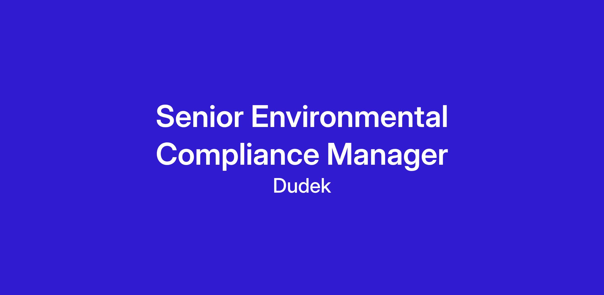We are seeking a senior-level professional to support environmental compliance services. This position will primarily be office based. There will be opportunities for field work and travel, but the majority of the work will be completed in Dudek’s office or working from a home office.