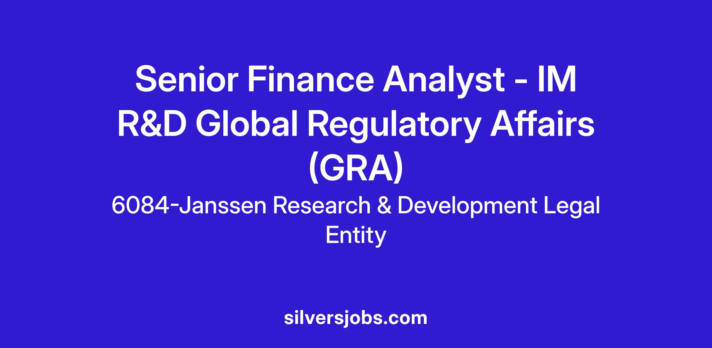 Johnson & Johnson is recruiting for a Senior Finance Analyst - IM R&D Global Regulatory Affairs (GRA). This position can be located in Spring House, PA; Raritan, NJ; or Titusville, NJ.