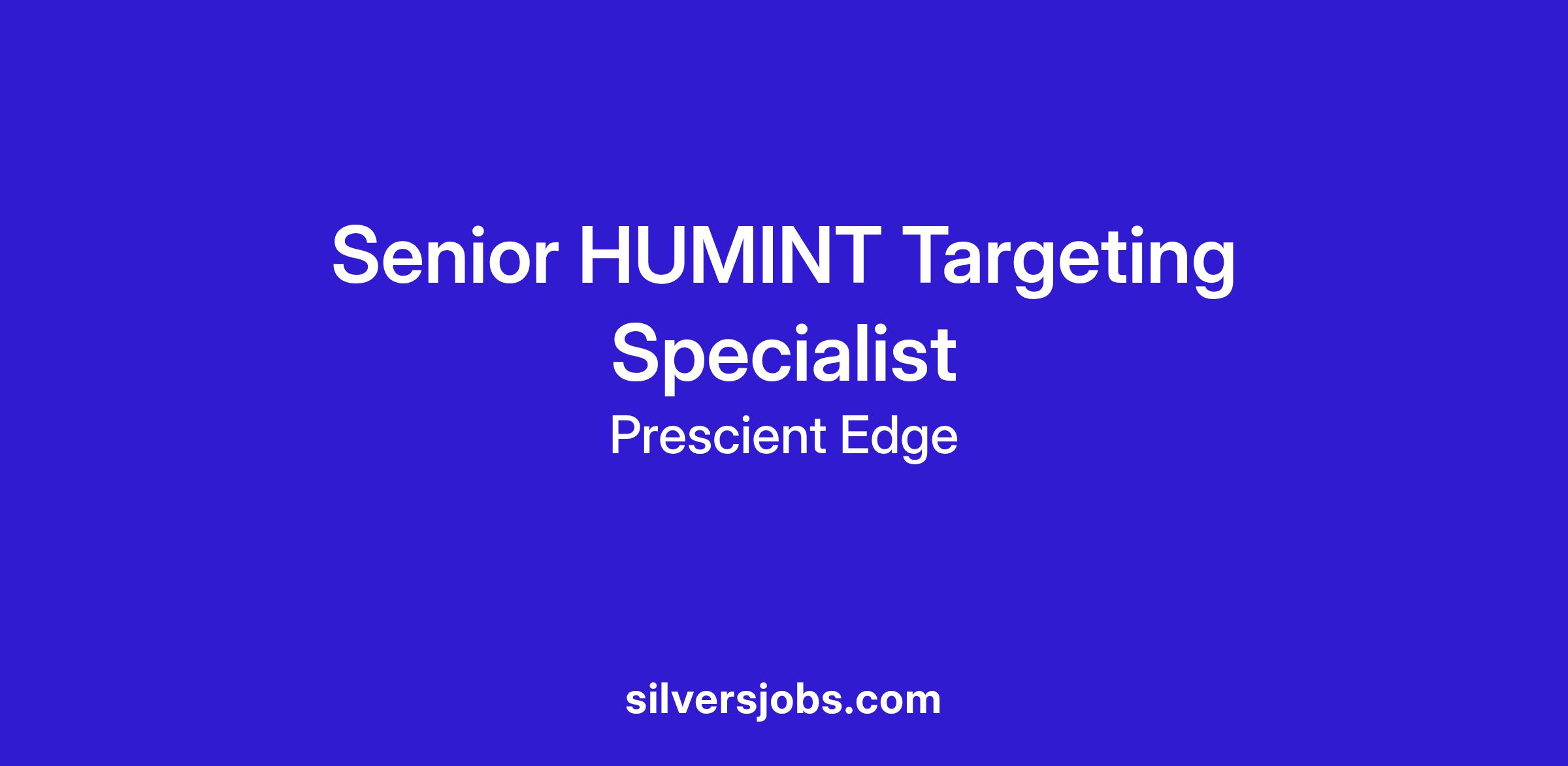 Prescient Edge is seeking a Senior HUMINT Targeting Specialist to support a Federal Government client.