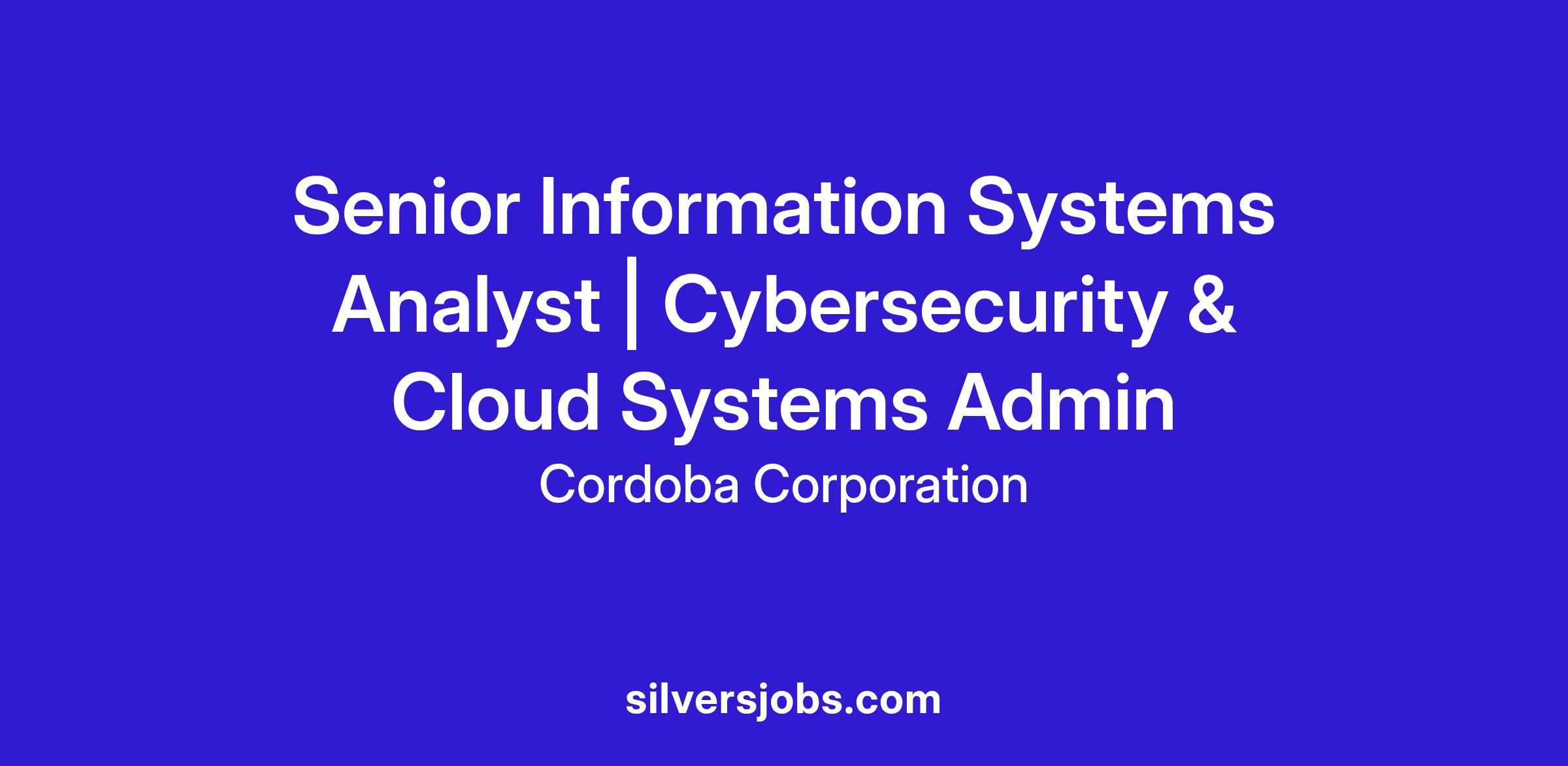 Cordoba Corporation, a leading engineering firm in California, is hiring a Senior Information Systems Analyst to lead our Cybersecurity and Cloud Systems Administration work including significant client project work. Under general supervision, this role involves planning, analyzing, designing, architecting, and implementing data infrastructure, information flows, and security measures. As a first-line subject matter expert, you will supervise and guide staff in cybersecurity activities, managing the most complex aspects of our security program. Responsibilities include overseeing cybersecurity measures, combating security intrusions, and protecting confidential data against unauthorized access. This role holds supervisory authority over assigned staff and consultants for Cybersecurity and Cloud-based systems. Join us in being at the forefront of our cybersecurity efforts.