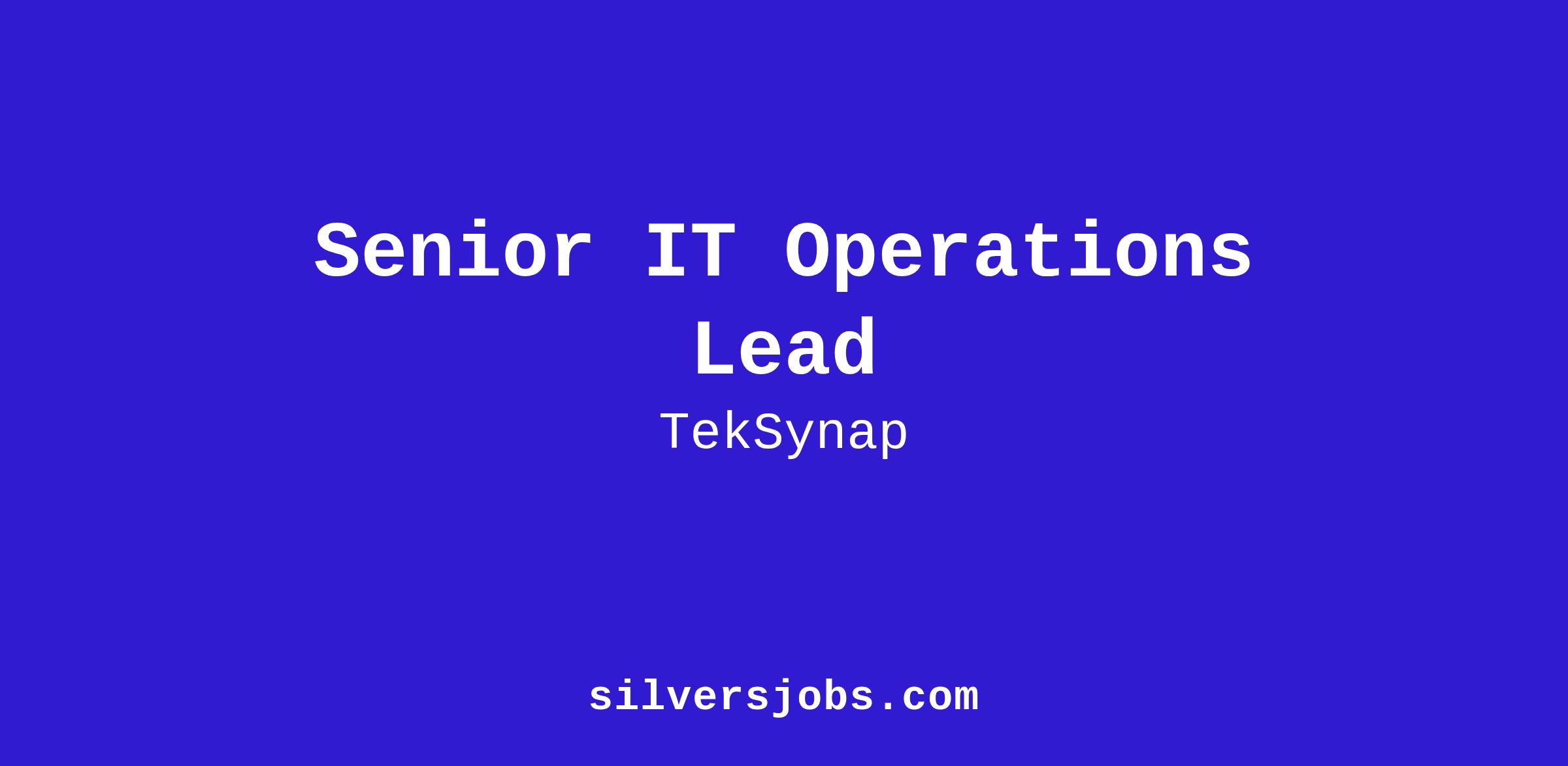We are seeking an Senior IT Operations Lead to join our TekSynap “West” team.
