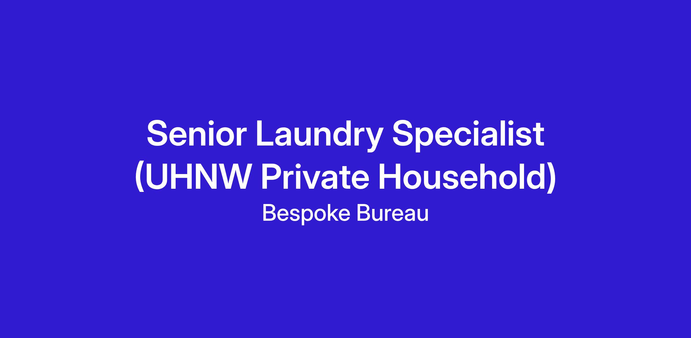 <\/html>"}}],"isMobile":false,"iframe":"true","jobType":"Full time","applyName":"Apply Now","zsoid":"49276614","FontFamily":"PuviRegular","jobOtherDetails":[{"fieldLabel":"Vacancy ID","uitype":111,"value":"ZR_472_JOB"},{"fieldLabel":"Vacancy Status","uitype":2,"value":"In\-progress"},{"fieldLabel":"Work Experience","uitype":2,"value":"5\-10 years"},{"fieldLabel":"Client Requirement","uitype":1,"value":"See job spec"},{"fieldLabel":"Start Date","uitype":1,"value":"ASAP"},{"fieldLabel":"Industry","uitype":2,"value":"Housekeeper"},{"fieldLabel":"Application","uitype":1,"value":"Send your CV to sara@bespokebureau.com"},{"fieldLabel":"City","uitype":1,"value":"Chelsea"},{"fieldLabel":"State\/Province","uitype":1,"value":"Greater London"},{"fieldLabel":"Zip\/Postal Code","uitype":1,"value":"SW10"}],"headerName":"Senior Laundry Specialist (UHNW Private Household)","widgetId":"305300000000072311","isJobBoard":"false","userId":"305300000000080003","attachArr":[],"customTemplate":"5","isCandidateLoginEnabled":false,"jobId":"305300000015451239","FontSize":"15","location":"Chelsea","embedsource":"CareerSite","indeedCallBackUrl":"https:\/\/recruit.zoho.com\/recruit\/JBApplyAuth.do","logoId":"ht8bl2da662037c254c8ebd77d3689950231a"}