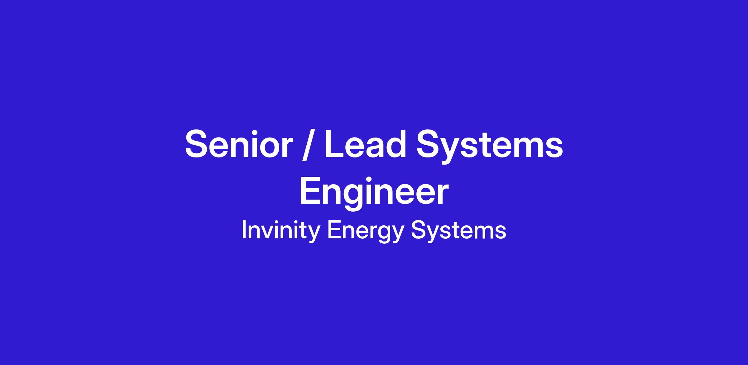 The Senior / Lead Systems Engineer is at the forefront of Invinity’s new vanadium flow battery architectures and product designs. They will deliver optimal design specifications supported by model-based engineering tools and empirical data. Centered in the Systems and Controls Engineering team within the Product Development Group, this role will coordinate collaboratively with the other engineering leads and technical teams to ensure the product design meets requirements and delivers value to the market.