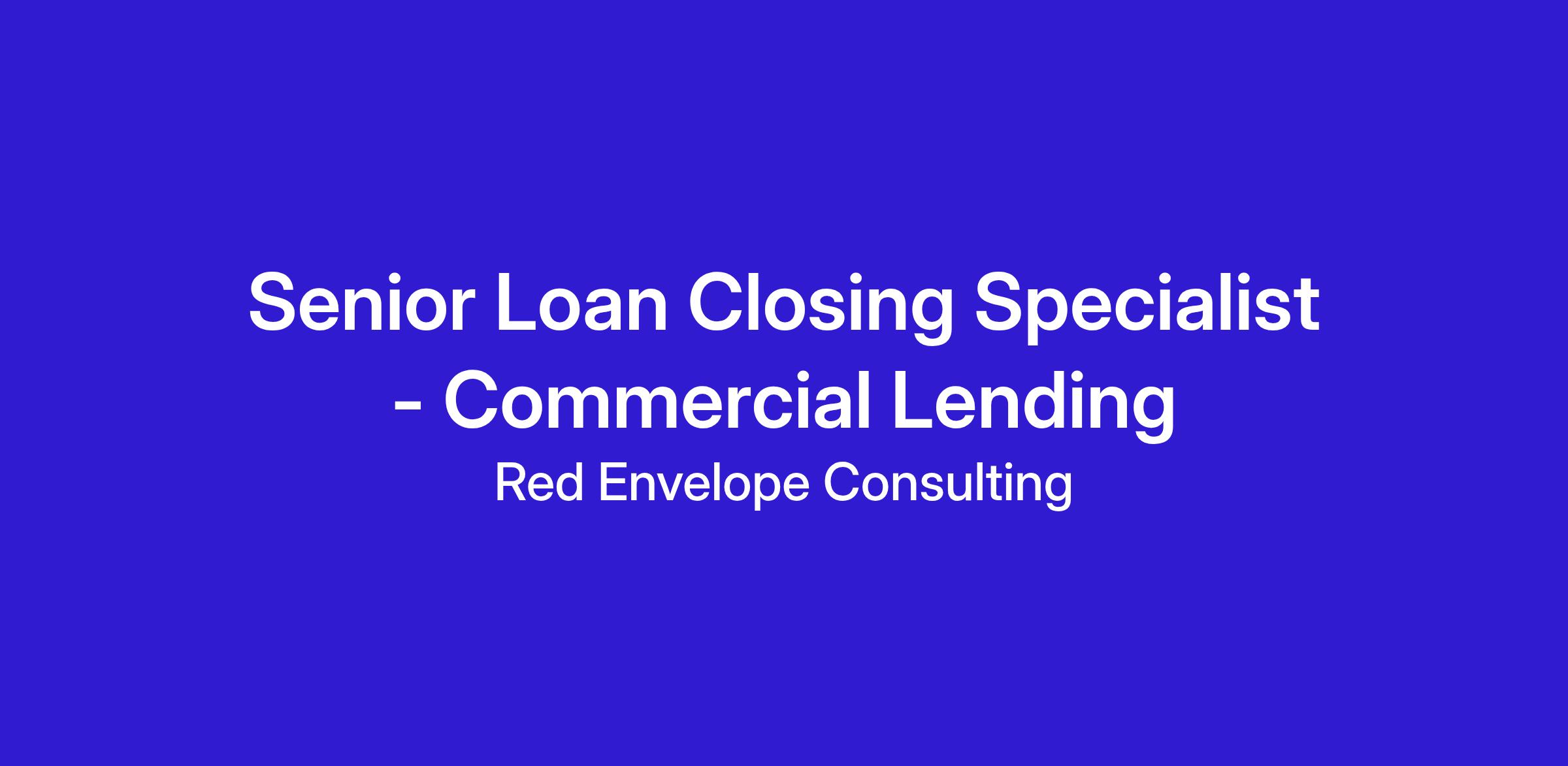 The Senior Loan Closing Specialist is responsible for all aspects of the loan closing process, including loan document preparation, reviewing title commitments, processing, and funding of church loans. This person will prepare, review, and verify all applicable loan documentation and required real estate due diligence items necessary for loan closings. This person will work closely with church staff, title companies, and attorneys with minimal oversight to ensure efficient and accurate loan closings. They will also provide guidance and support to other Loan Closing Specialists.
