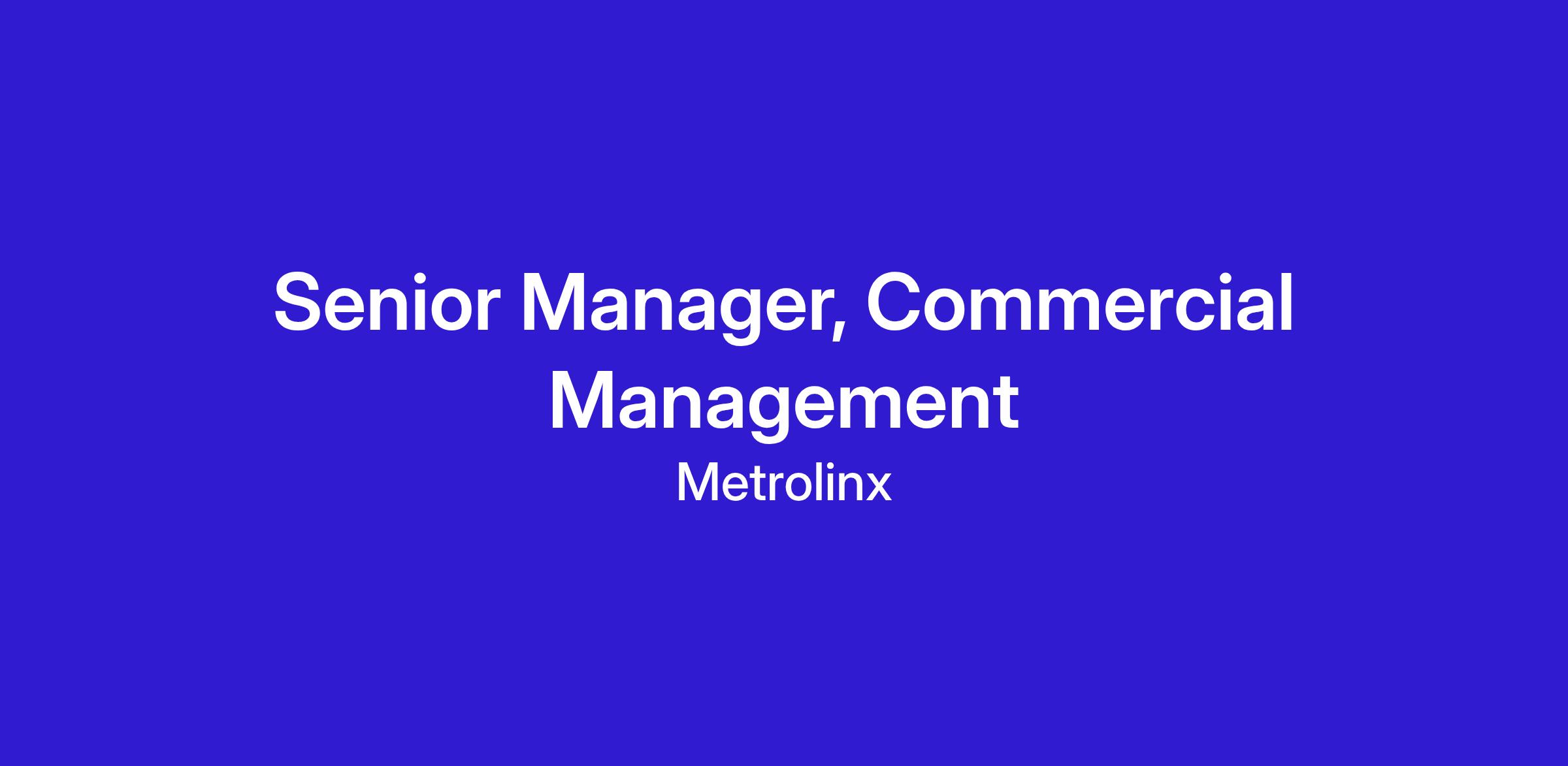 Our Commercial Management department within the CPG GO/UP team is looking for a Senior Manager, Commercial Management to join the team! Reporting to the Director, Commercial Management, you will lead and provide oversight of commercial governance and decision-making for Operations, including coordination across the corporation. This role will provide commercial options and strategic advice to the Director, Commercial Management, VP-Commercial Management, and other Metrolinx partners and leaders.