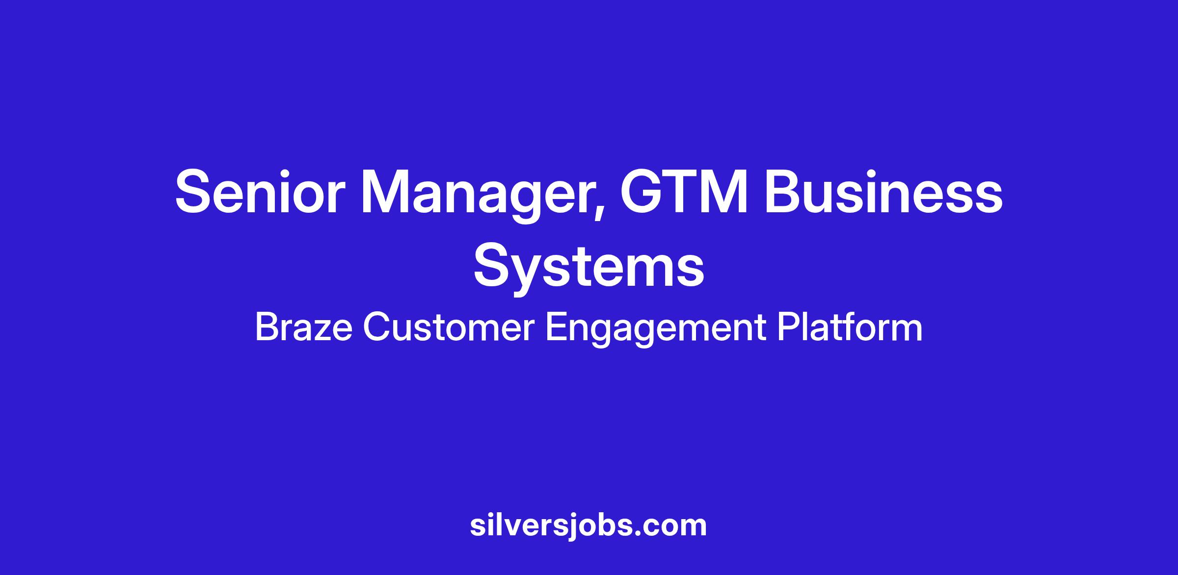 Braze is a leading customer engagement platform, powering relevant and memorable experiences between brands and their customers. We are seeking a Senior Manager, GTM Business Systems, to lead our go-to-market (GTM) business systems analysts team, and define the strategic roadmap for our GTM technology stack. This is a very critical and visible leadership role for an experienced and visionary professional who can combine a deep understanding of business processes and best practices, with a mastery of technology to drive operational excellence and accelerate company growth.