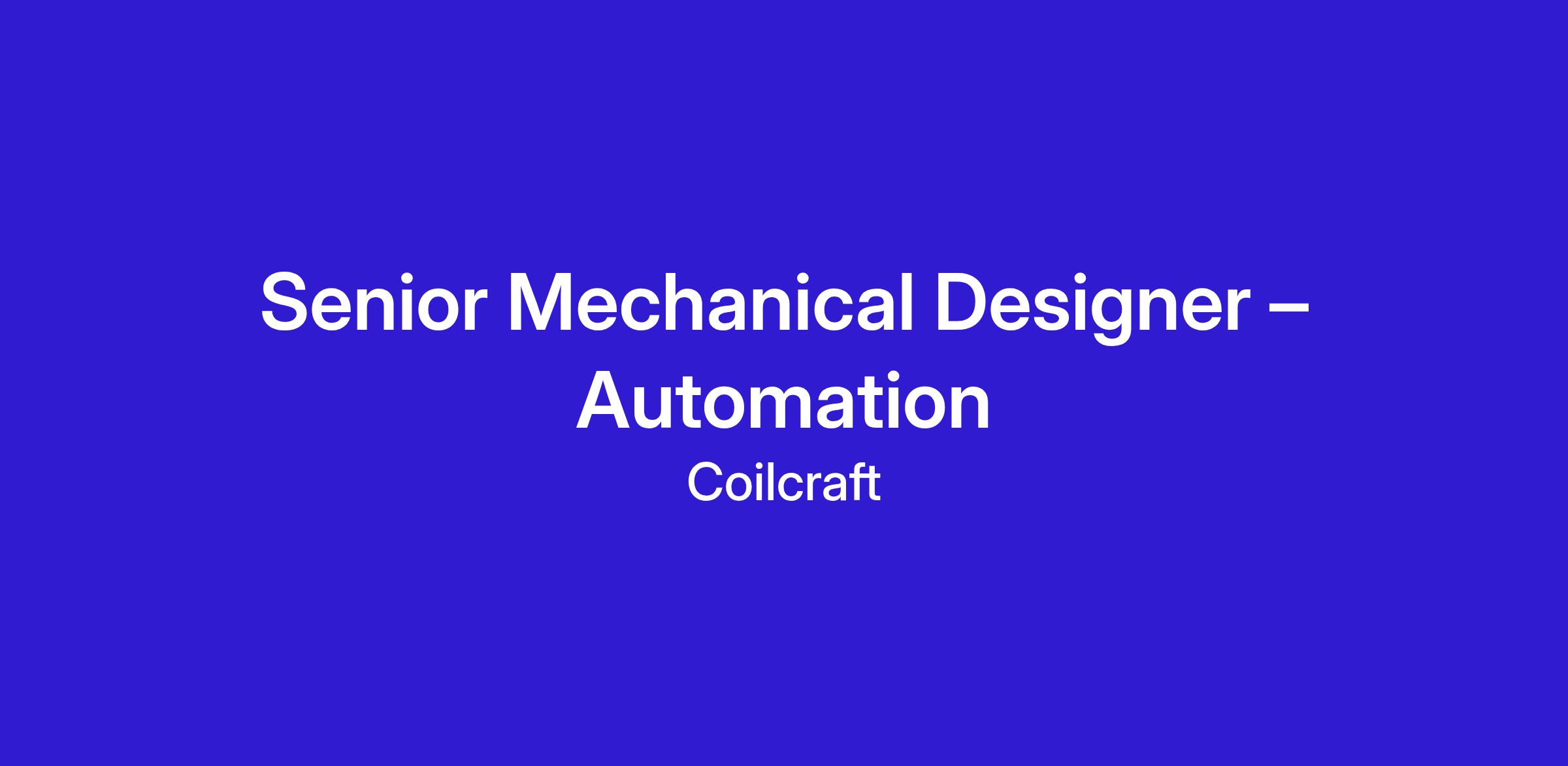 Coilcraft, Inc., a global manufacturing organization headquartered in Cary, Illinois, is seeking a seasoned Senior Mechanical Designer to join our Engineering Automation Department. This role is intentionally positioned for experienced candidates who can independently lead complex automation projects and guide the full lifecycle of mechanical and machine design. Responsibilities: