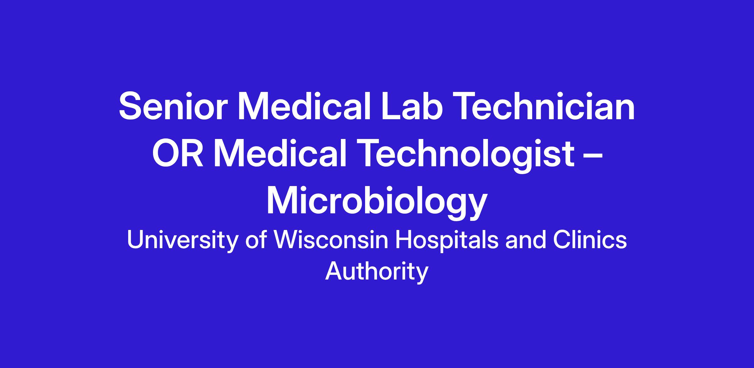 We are seeking a Senior Medical Lab Technician OR Medical Technologist – Microbiology to: