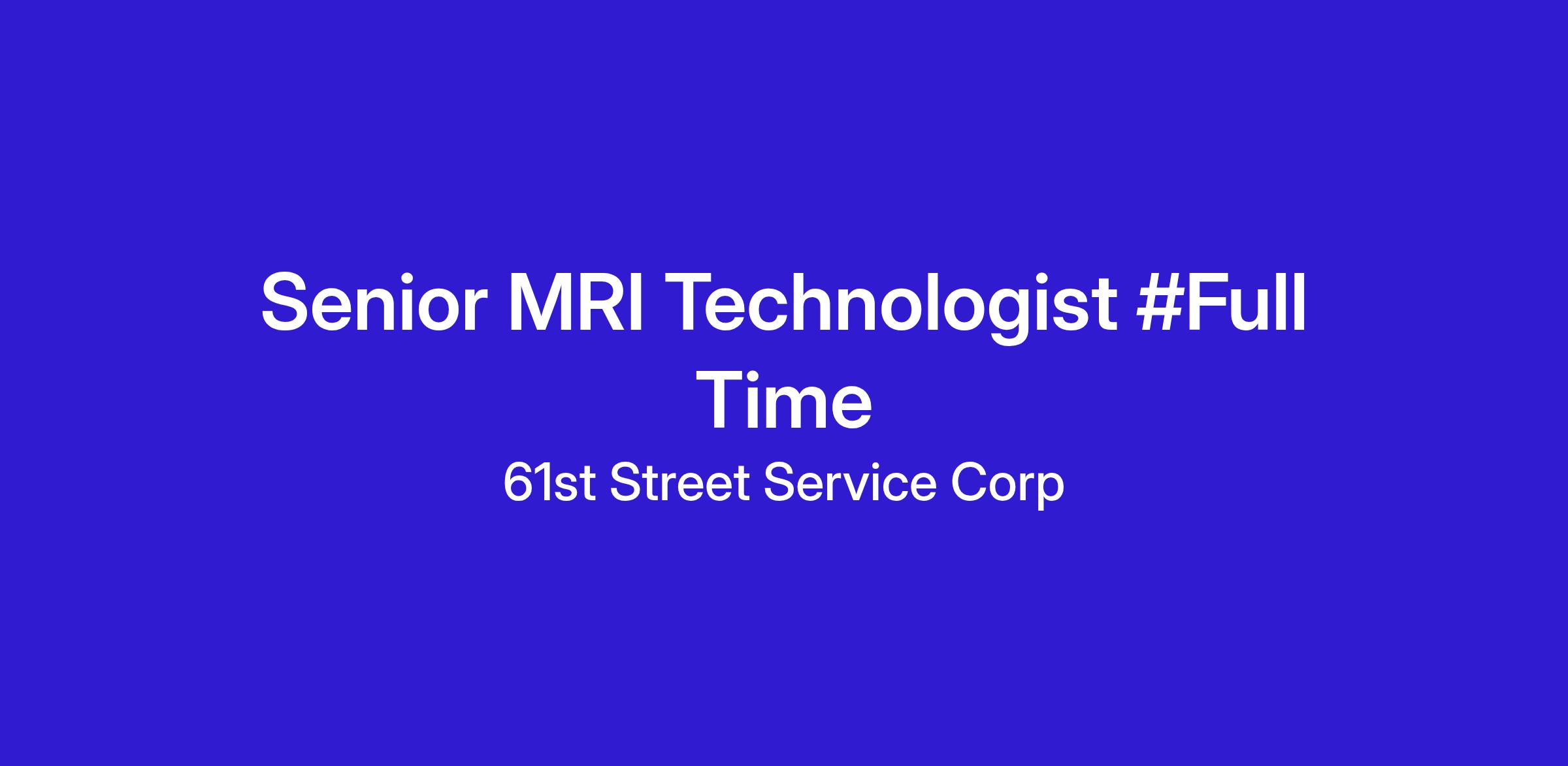 Senior MRI Technologist #Full Time
