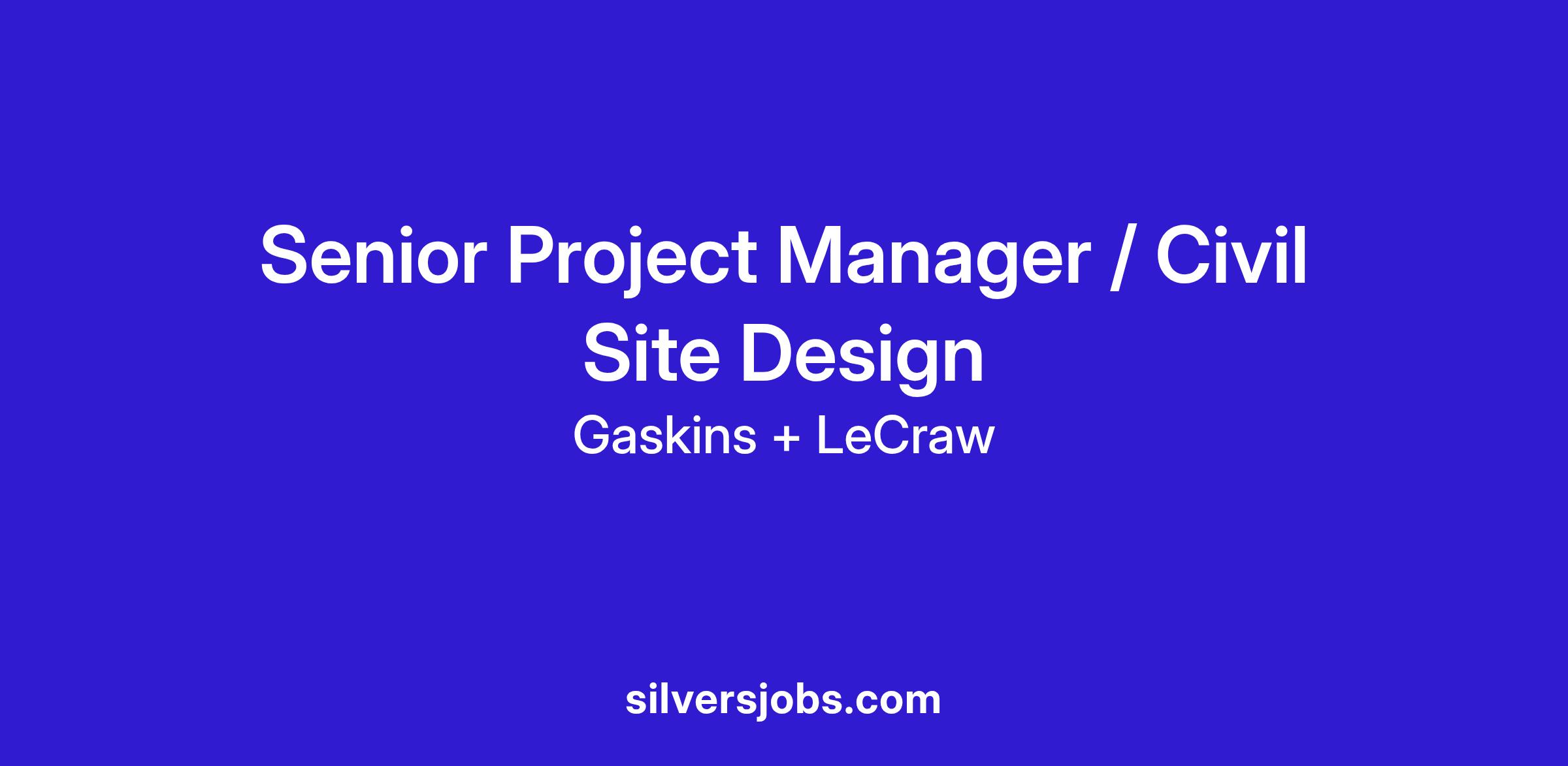 Gaskins + LeCraw, a Pape-Dawson company, is seeking an experienced SeniorCivil Engineer / Project Manager for our Duluth office. This candidate MUST have Civil Site Development experience.