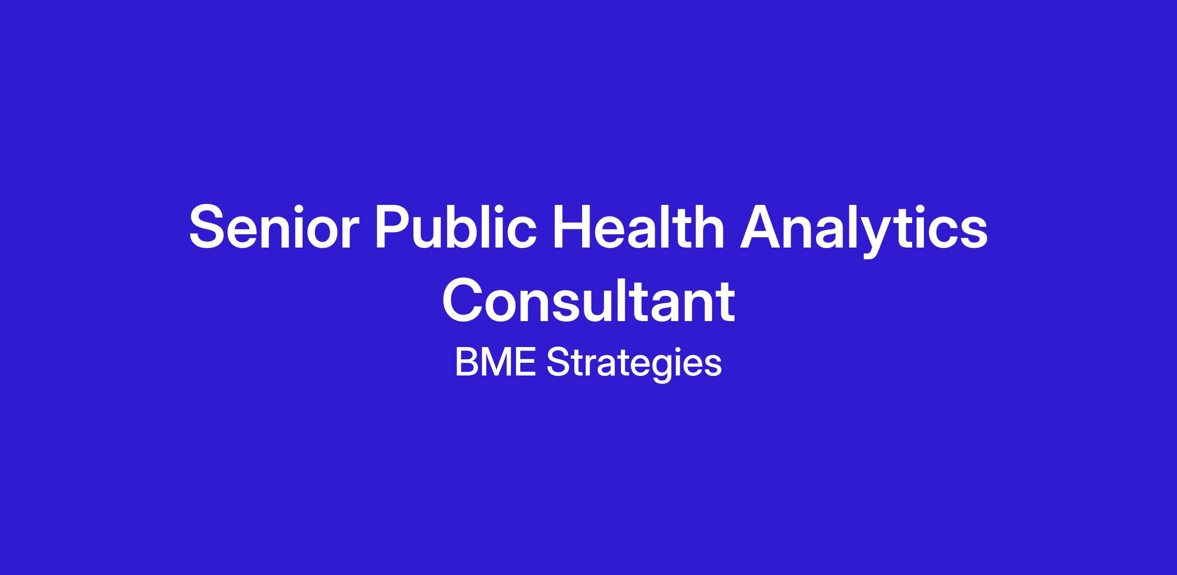 - Minimum 6 years of experience supporting public health analytics, data strategy, performance reporting, or dashboard development in a consulting, government, or applied public health setting.