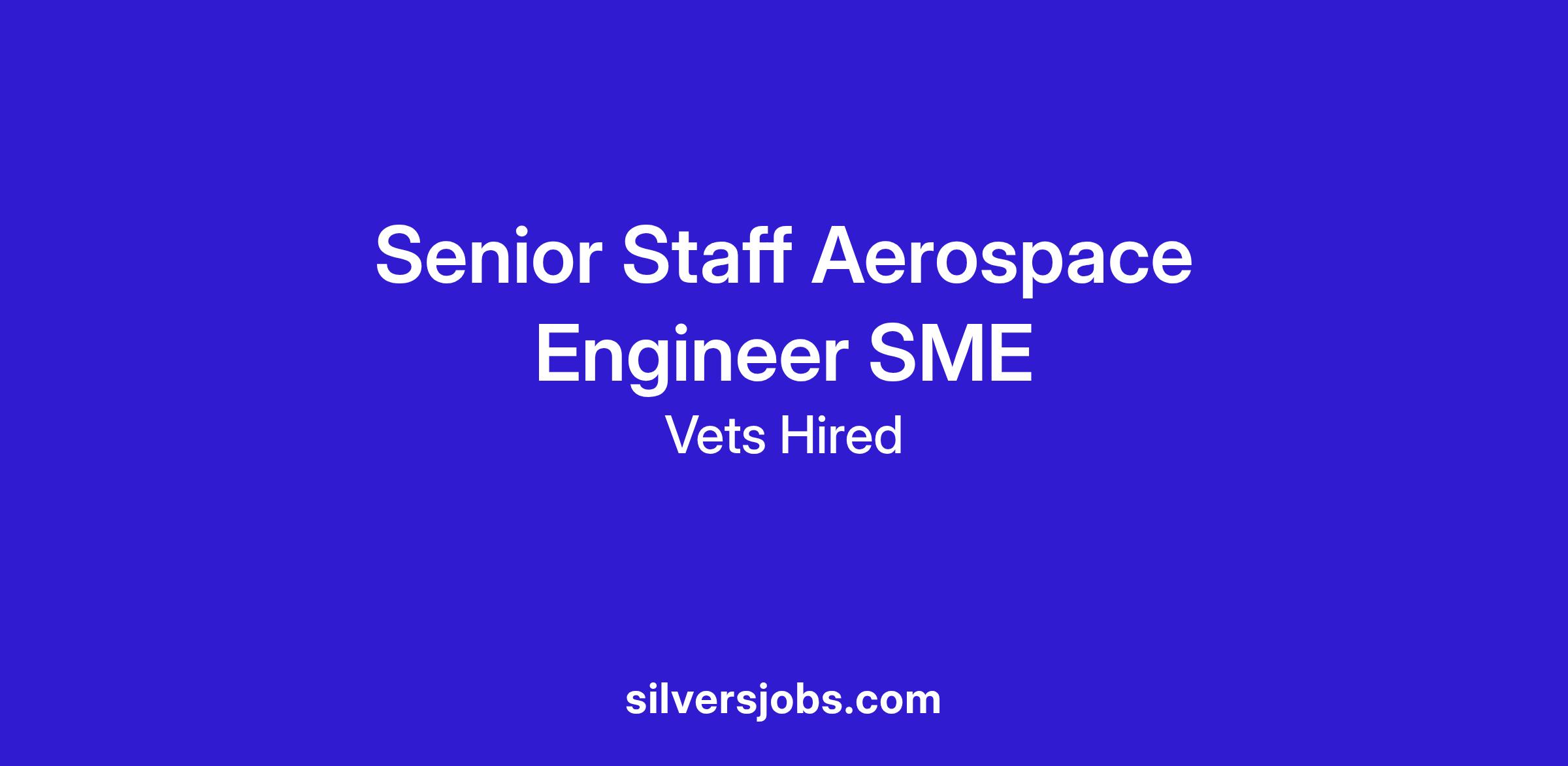 We are seeking an experienced Senior Staff Aerospace Engineer SME to support the Air Force Research Laboratory (AFRL) / Integrated Experiments and Evaluation Division (RVE) in cradle-to-grave mission support.