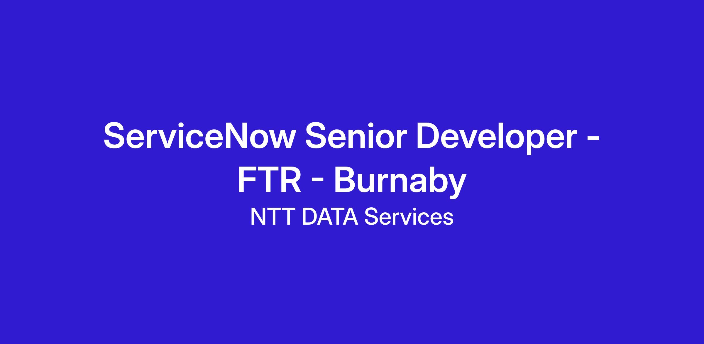 We are currently seeking a ServiceNow Senior Developer - FTR - Burnaby to join our team in Burnaby, British Columbia (CA-BC), Canada (CA).