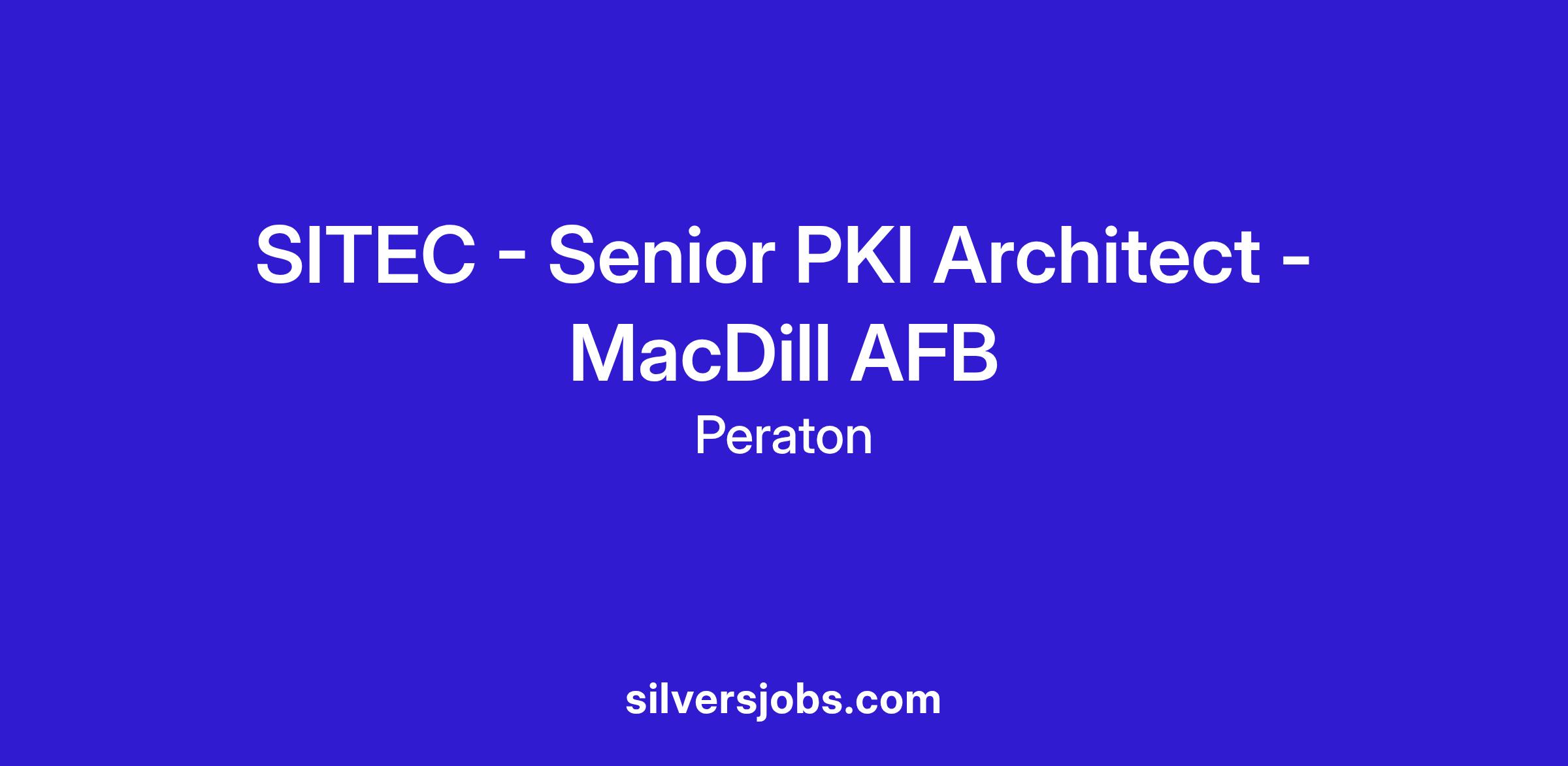 Peraton requires a Senior Public Key Infrastructure (PKI) Architect to support the Special Operation Command Information Technology Enterprise Contract (SITEC) – 3. This position is located at MacDill AFB.